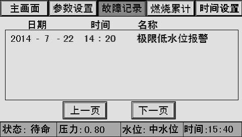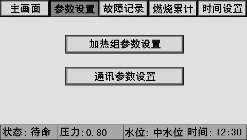 主畫面上同時顯示控制器狀態(tài)、系統(tǒng)壓力、水位、時間、燃燒器狀態(tài)、泵狀態(tài)等。
