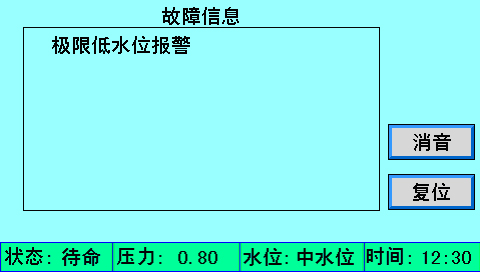 3、如發(fā)生缺水、超溫、超壓等報警時,應及時排除故障狀態(tài)方可恢復運行;如柜內帶有報警蜂鳴器(220V AC),則首先應關閉報警音,蜂鳴器連續(xù)工作不可超過 30 秒。