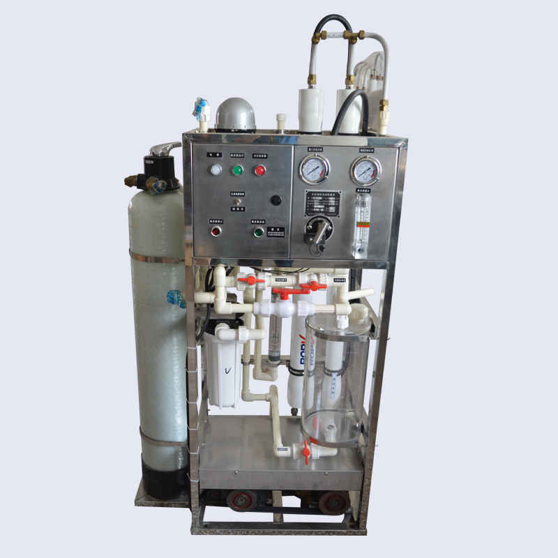 海水淡化機(jī)可安裝在船舶的輪機(jī)艙、船員艙、過道、廚房及有遮蓋的甲板上,底部加基座。設(shè)備正面應(yīng)留有0.6米,兩側(cè)及后面各留有0.3米的操作維修空間。